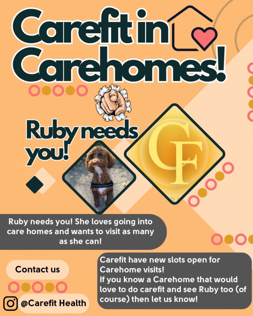 Do you have a loved one or someone close in a care home who would love to meet Ruby doo and take part in an action packed, fun filled Carefit session.